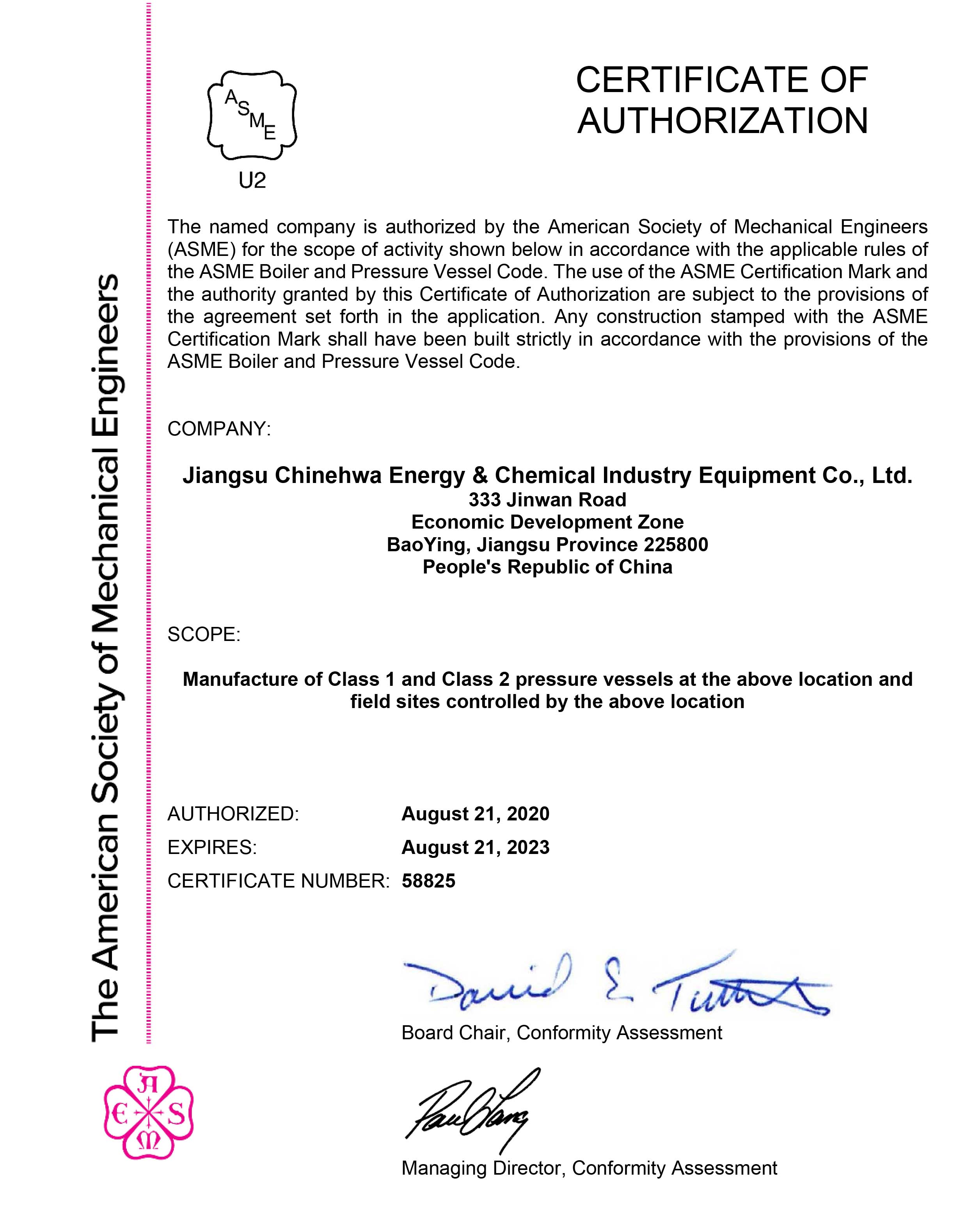 2020年7月27日,ASME聯(lián)檢小組接受成華公司申請(qǐng)如期至成華制造基地-江蘇成華能源化工設(shè)備有限公司進(jìn)行為期2天的換證審核,此次換證工作包括審核U鋼印的執(zhí)行狀況以及新增U2鋼印。換證審核程序包括體系審核、工程師答辯、車間考察等等。ASME聯(lián)檢小組對(duì)審核結(jié)果非常滿意,公司圓滿完成換證,順利獲得U和U2鋼印證書。